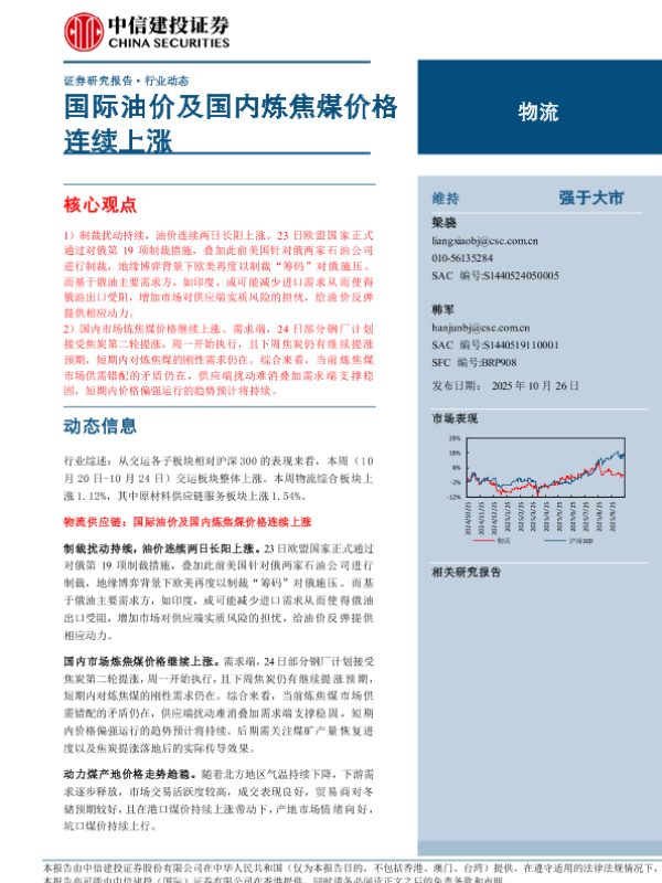 【中信建投证券】【202510】物流行业动态:国际油价及国内炼焦煤价格连续上涨-14页 证券期货研究报告