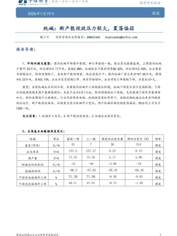 【宁证期货】【202601】纯碱:新产能投放压力较大,震荡偏弱-5页 证券期货研究报告