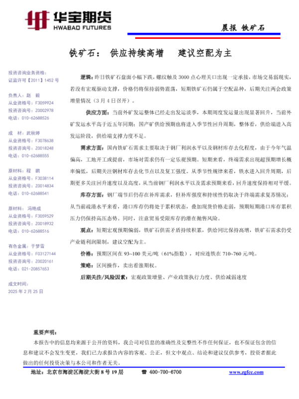 【华宝期货】【202502】铁矿石_供应持续高增_建议空配为主-1页 证券期货研究报告