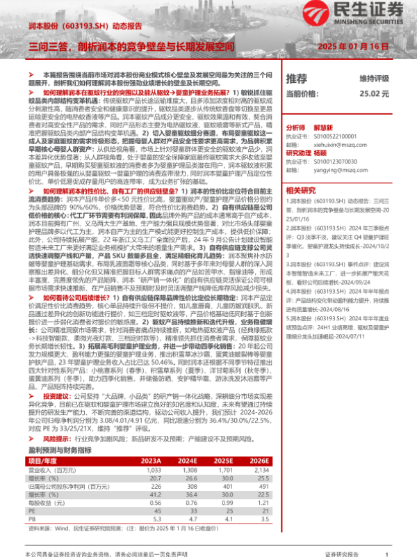 【民生证券】【20250116】20250116-民生证券-润本股份-603193.SH-动态报告:三问三答,剖析润本的竞争壁垒与长期发展空间-21页 行业研究