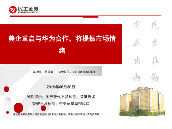 【民生证券】【20190630】美企重启与华为合作,将提振市场情绪-5页 行业研究