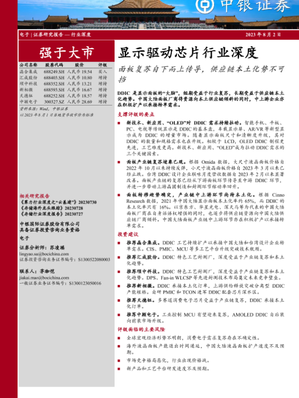 【中银证券】【20230803】显示驱动芯片行业深度-面板复苏自下而上传导-供应链本土化势不可挡-75页 行业研究