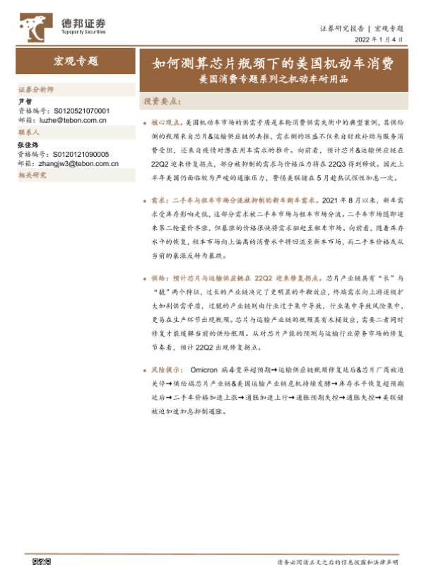 【德邦证券】【20220104】美国消费专题系列之机动车耐用品:如何测算芯片瓶颈下的美国机动车消费-22页 行业研究