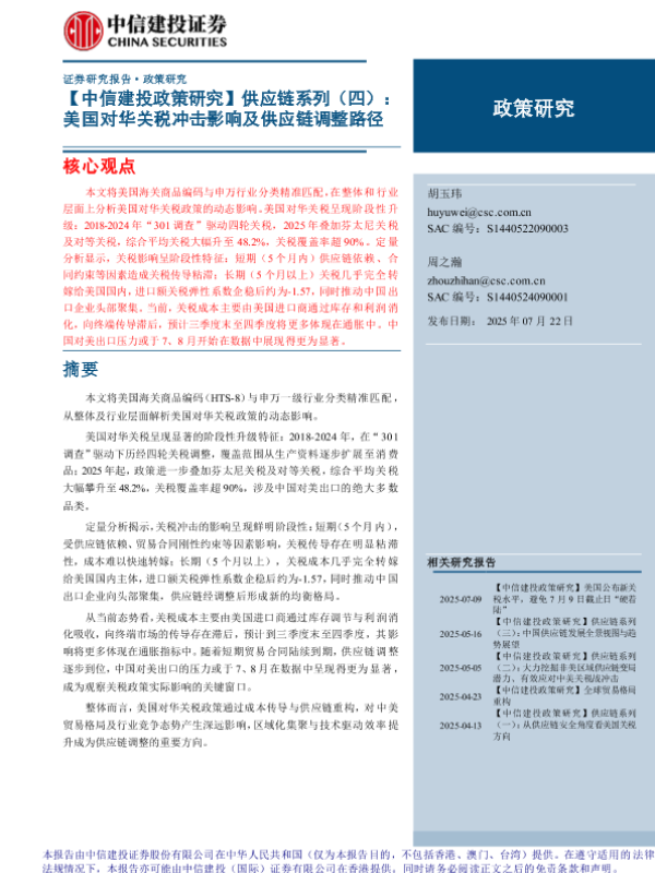 【中信建投证券】【20250722】供应链系列(四):美国对华关税冲击影响及供应链调整路径-18页 证券期货研究报告