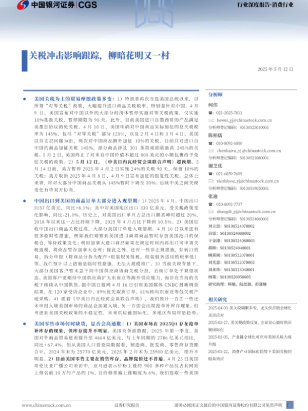 【银河证券】【20250512】消费行业:关税冲击影响跟踪,柳暗花明又一村-26页 行业研究