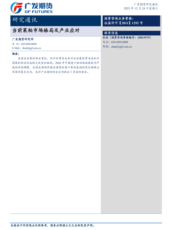 【广发期货研究所】【202512】当前菜粕市场格局及产业应对-8页 证券期货研究报告