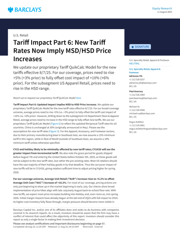 【Barclays Bank PLC】【202508】U.S. Retail - Estimated Tariff Impact on P&L-63页 公司研究