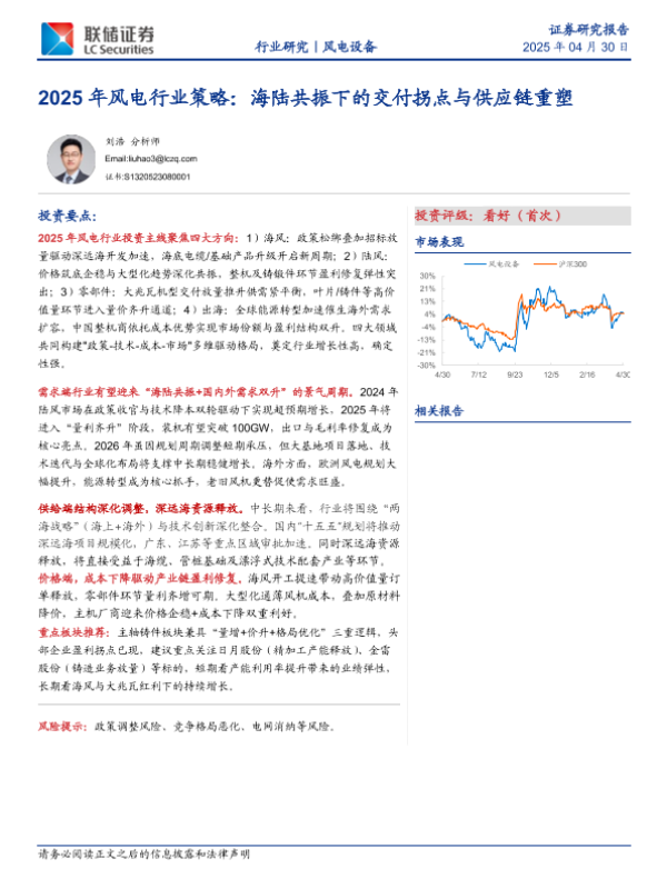 【联储证券】【20250430】2025年风电行业策略:海陆共振下的交付拐点与供应链重塑-22页 行业研究
