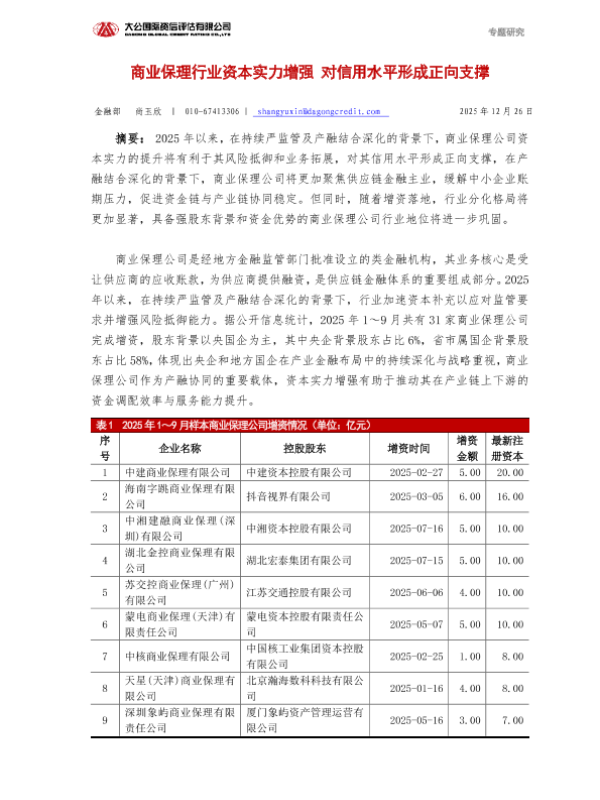【大公国际】【202512】商业保理行业资本实力增强对信用水平形成正向支撑-4页 行业研究