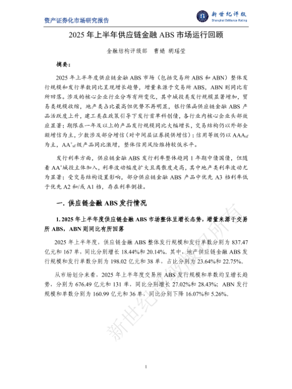 【金融结构评级部 曹婧胡瑶莹】【2025】2025年上半年供应链金融 ABS市场运行回顾-11页 证券期货研究报告