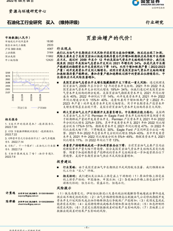 【国金证券】【20220804】20220804-国金证券-石油化工行业研究:页岩油增产的代价!-13页 行业研究