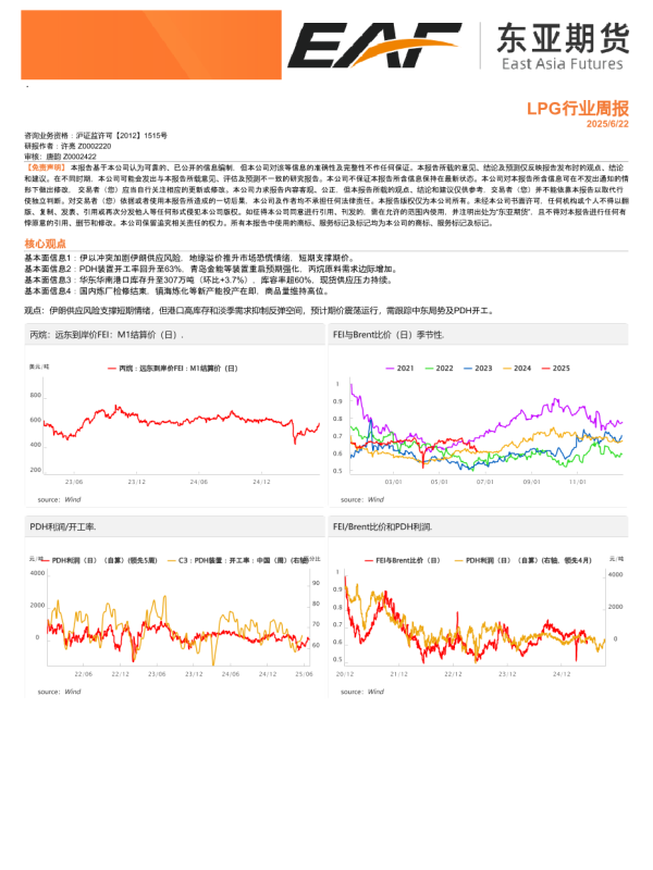 【东亚期货】【20250622】LPG行业周报-3页 证券期货研究报告