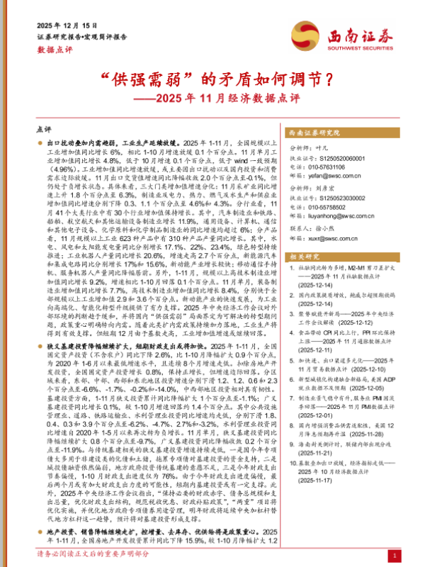 【西南证券】【202512】“供强需弱”的矛盾如何调节?——2025年11月经济数据点评-7页 证券期货研究报告
