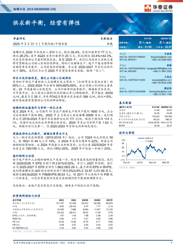 【华泰证券】【20250331】海螺水泥供求新平衡,经营有弹性-18页 公司研究