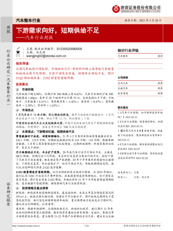 【浙商证券】【20210328】20210328-浙商证券-汽车行业周报:下游需求向好,短期供给不足-24页 行业研究