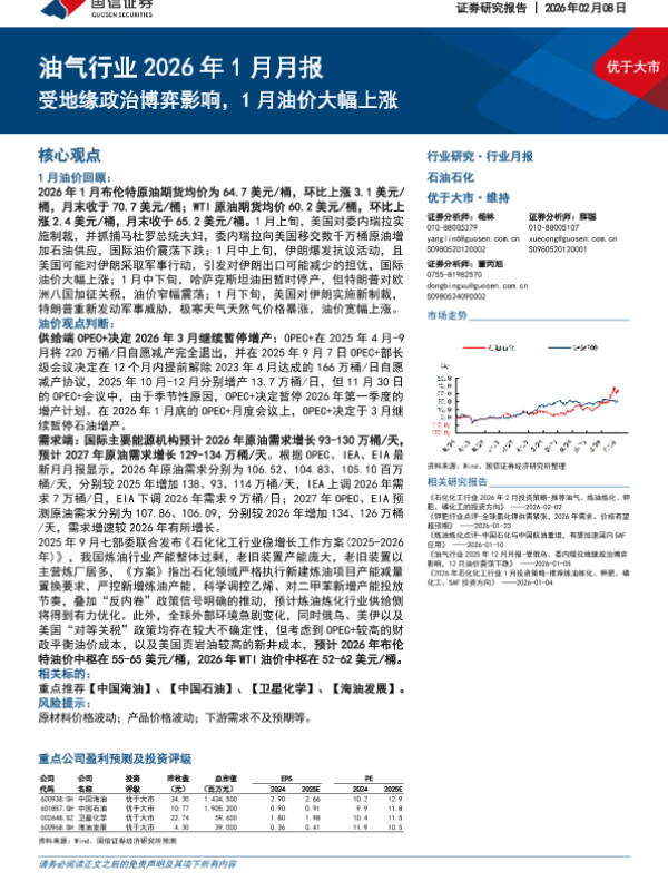 【国信证券】【202602】优于大市 油气行业 2026年 1月月报-26页 证券期货研究报告