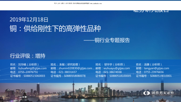 【国泰君安证券】【20191218】铜行业专题报告:供给刚性下的高弹性品种-49页 证券期货研究报告