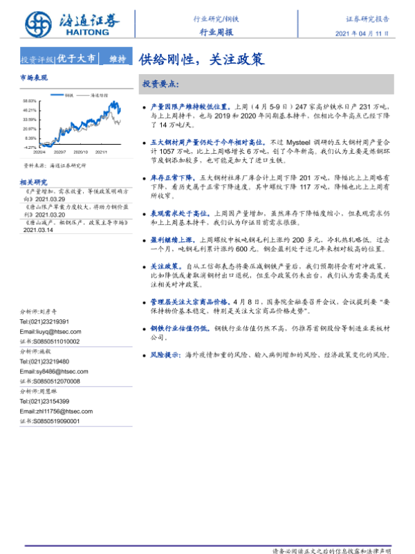 【海通证券】【20210411】20210411-海通证券-钢铁行业周报:供给刚性,关注政策-13页 行业研究