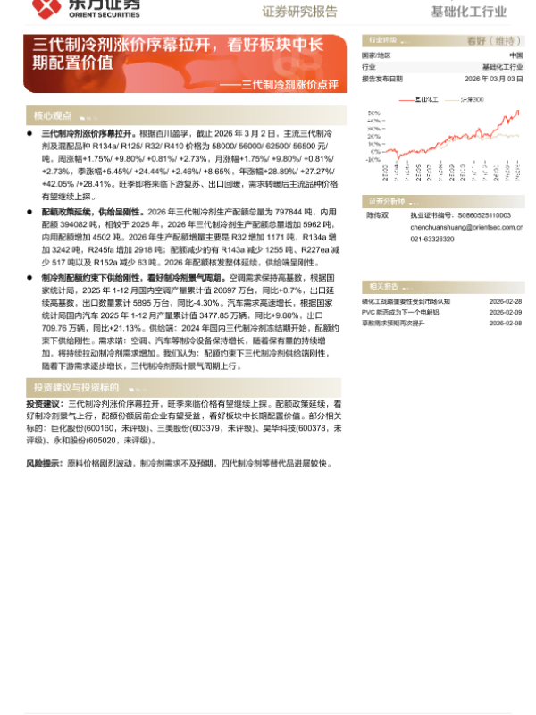 【东方证券】【202603】三代制冷剂涨价序幕拉开,看好板块中长期配置价值-3页 证券期货研究报告