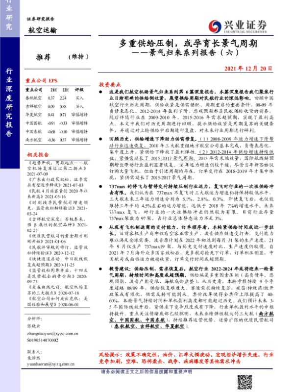 【兴业证券】【20211220】多重供给压制,或孕育长景气周期——景气归来系列报告(六)-32页 行业研究