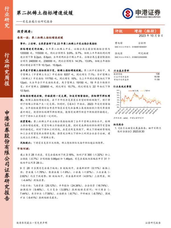 【申港证券】【20231009】2023-10-10-有色金属行业研究报告-第二批稀土指标增速放缓-11页 行业研究