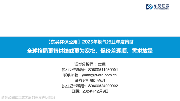 【东吴证券】【20241209】2025年燃气行业年度策略:全球格局更替供给或更为宽松,促价差理顺、需求放量-47页 行业研究