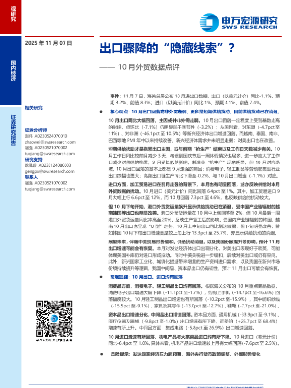【申万宏源】【202511】出口骤降的“隐藏线索”?—— 10月外贸数据点评-10页 证券期货研究报告