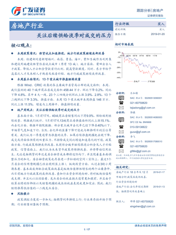【广发证券】【20190120】关注后续供给淡季对成交的压力-17页 行业研究