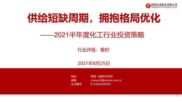 【浙商证券】【20210825】2021半年度化工行业投资策略:供给短缺周期,拥抱格局优化-29页 行业研究