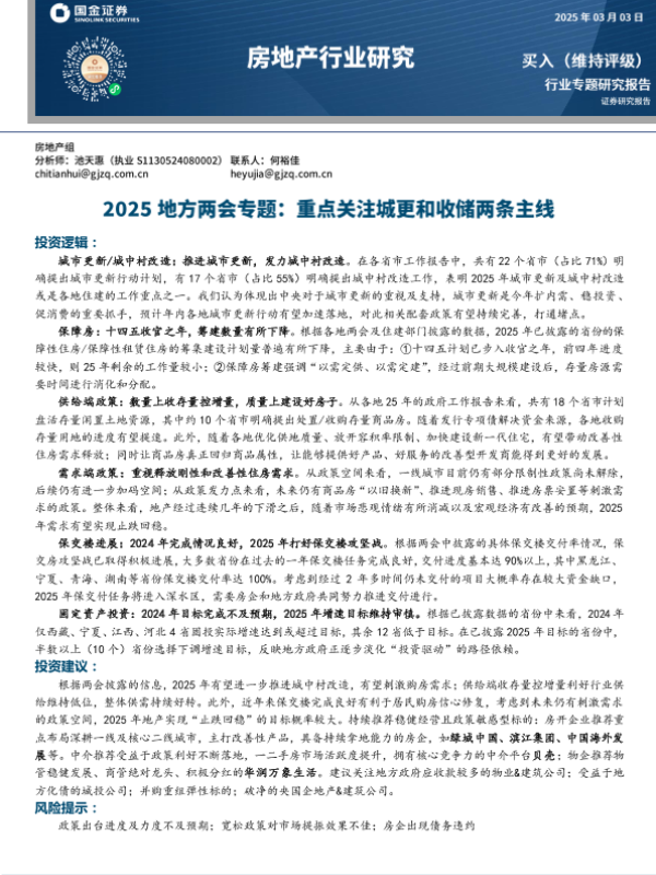 【国金证券】【20250305】2025地方两会专题,重点关注城更和收储两条主线-20页 行业研究