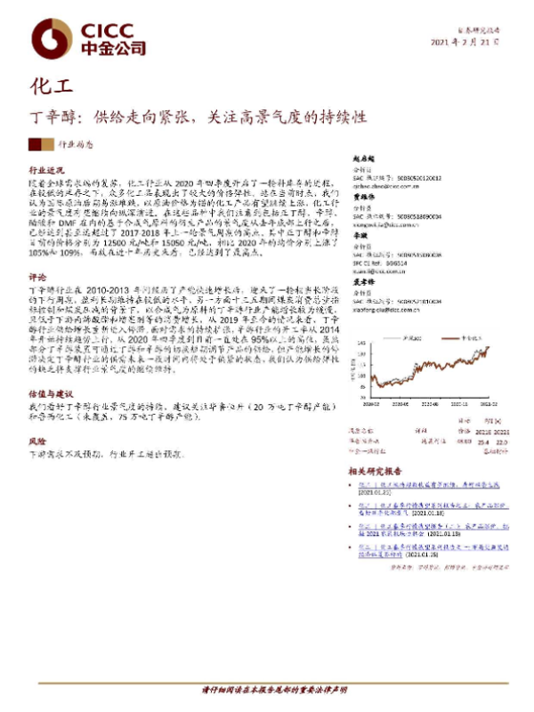 【中金公司】【20210221】化工:丁辛醇:供给走向紧张,关注高景气度的持续性-8页 行业研究
