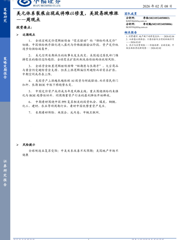【华福证券】【202602】美元体系裂痕出现或将难以修复,美股易跌难涨——周观点-10页 证券期货研究报告