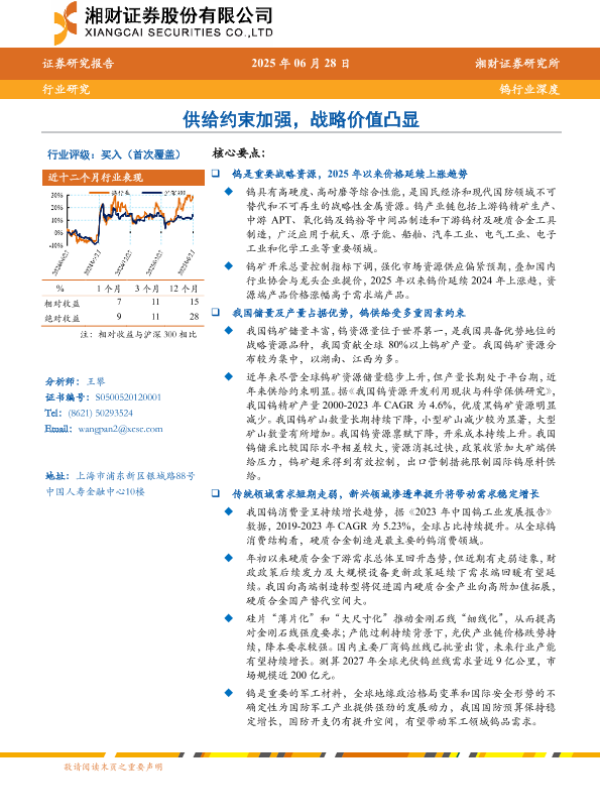 【湘财证券】【20250628】钨行业深度:供给约束加强,战略价值凸显-29页 行业研究