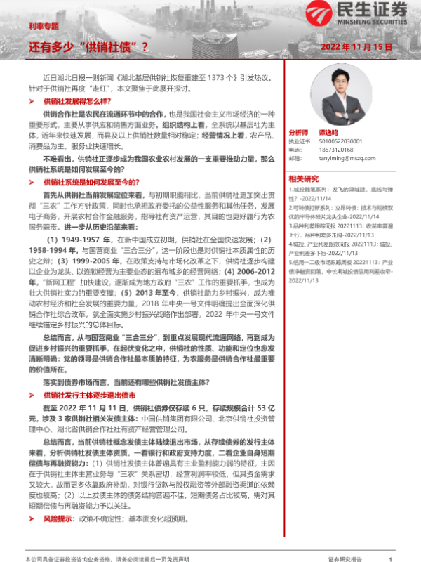 【民生证券】【20221115】利率专题:还有多少”供销社债“?-21页 行业研究