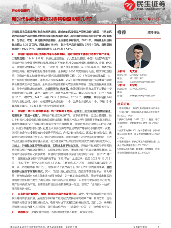 【民生证券】【20221126】商贸零售行业专题研究:新时代供销社系统对零售物流影响几何?-20页 行业研究