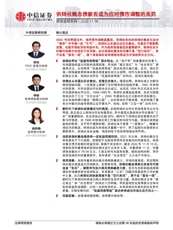 【中信证券】【20221116】债市启明系列:供销社概念债能否成为应对债市调整的良药-39页 行业研究