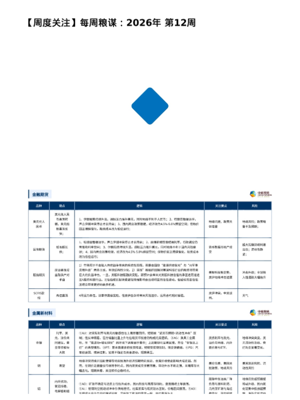 【中粮期货】【202603】每周粮谋-4页 证券期货研究报告