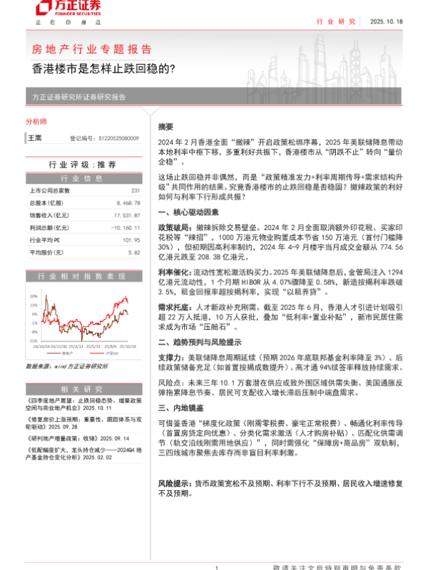 【方正证券】【202510】房地产行业专题报告:香港楼市是怎样止跌回稳的?-14页 证券期货研究报告