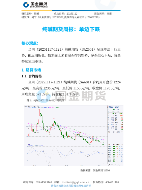 【国金期货】【202511】纯碱期货周报:!单边下跌-4页 证券期货研究报告