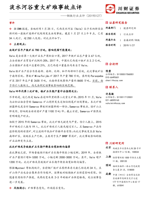 【川财证券】【20190127】淡水河谷重大矿难事故点评-2页 行业研究
