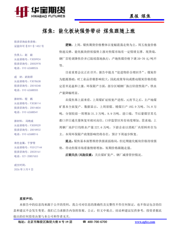 【华宝期货】【202603】煤焦_能化板块强势带动_煤焦跟随上涨-1页 证券期货研究报告