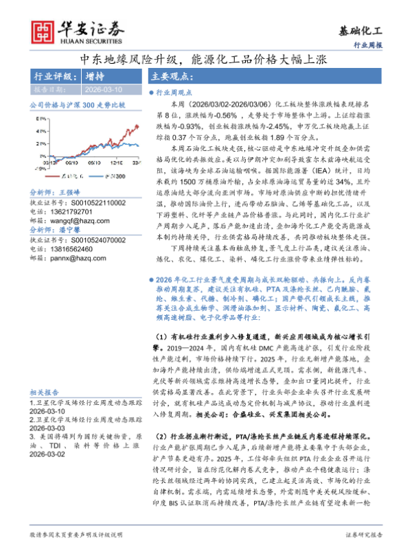 【华安证券】【202603】中东地缘风险升级,能源化工品价格大幅上涨-32页 证券期货研究报告