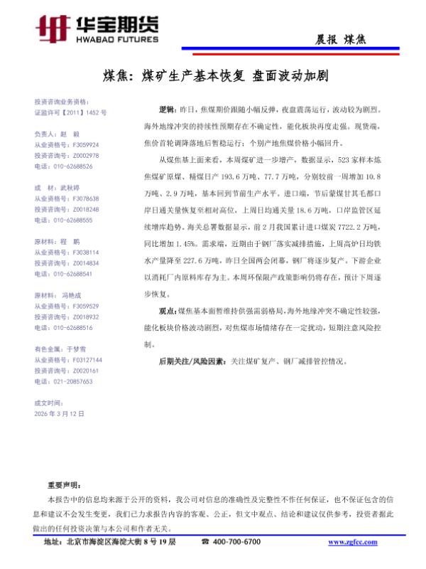 【华宝期货】【202603】煤焦_煤矿生产基本恢复_盘面波动加剧-1页 证券期货研究报告