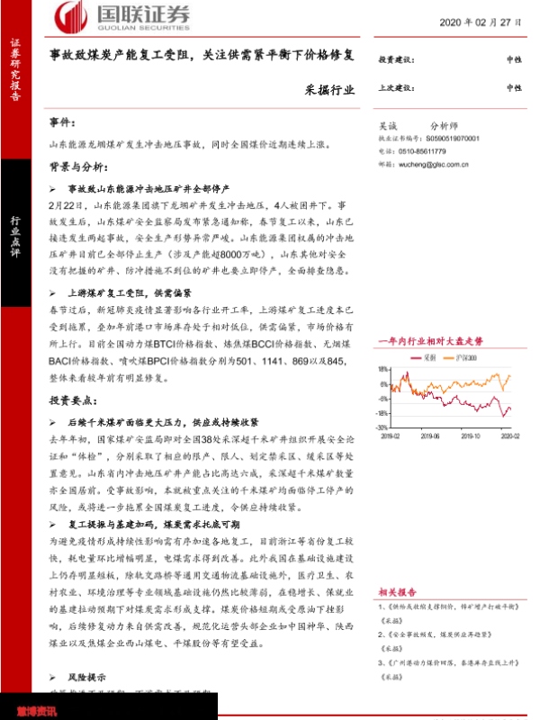【国联证券】【20200227】采掘行业:事故致煤炭产能复工受阻,关注供需紧平衡下价格修复-3页 行业研究