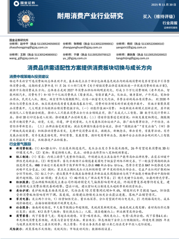 【万联证券】【202511】增强消费品供需适配性方案出台,多领域有望迎来扩容-3页 证券期货研究报告