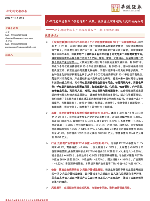 【华源证券】【202511】六部门发布消费品“供需适配”政策,关注重点消费领域北交所相关公司-16页 证券期货研究报告