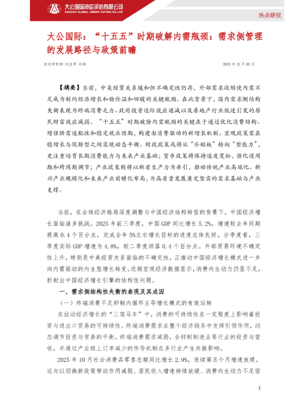 【大公国际】【202512】“十五五”时期破解内需瓶颈:需求侧管理的发展路径与政策前瞻-6页 宏观策略
