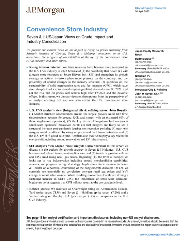 【J.P. Morgan】【20220406】J.P. 摩根-全球投资策略-美国、日本对原油影响和行业整合的看法-22页 行业研究