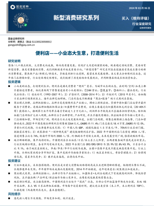 【国金证券】【20240306】新型消费行业研究系列:便利店,小业态大生意,打造便利生活-22页 行业研究