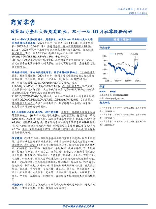 【国盛证券】【20241118】商贸零售行业点评:政策助力叠加大促周期延长,双十一及10月社零数据向好-14页 行业研究
